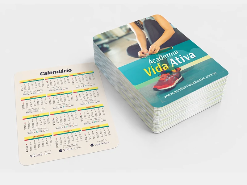 Calendário de Bolso SimplesMaterial: Couche 250gPrazo de produção: 5 dias úteis + prazo de entrega