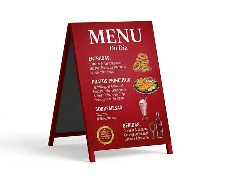 Destaque sua marca ou produto com nosso cavalete personalizado em lona 440g. Com tamanho de 70x100cm, é perfeito para eventos, feiras e exposições. Nossa equipe de design irá criar um layout personalizado de acordo com as suas necessidades e preferências. Além disso, nossa tecnologia de impressão de alta qualidade garante cores vibrantes e duráveis. Com um prazo de produção de apenas 5 dias úteis, você pode ter seu cavalete personalizado em mãos rapidamente. Não perca mais tempo e encomende agora mesmo!