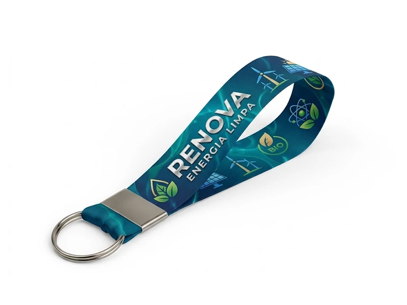 Personalize seu chaveiro com nosso serviço de impressão gráfica de alta qualidade. Nossa equipe utiliza poliéster acetinado de 20mm para criar um produto resistente e durável.