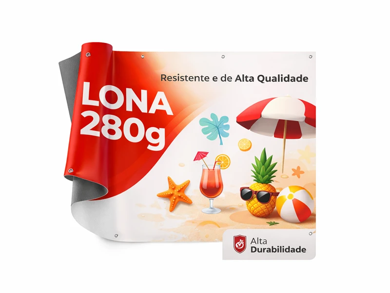 Impressão de alta qualidade em lona 280g, ideal para banners, faixas e outros materiais de comunicação visual.