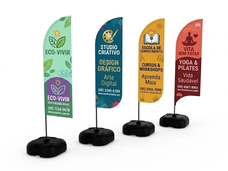 Produzido com material de alta qualidade, o Wind Banner Grande é uma ótima opção para quem busca fazer uma grande impressão!