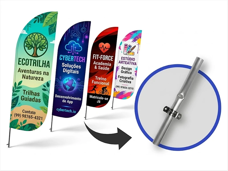 Nossa equipe de design está preparada para criar um layout personalizado e atraente para o seu Wind Banner, garantindo que ele se destaque em qualquer ambiente. Além disso, a impressão é feita com materiais de alta qualidade, assegurando uma reprodução fiel das cores e uma durabilidade excepcional.
